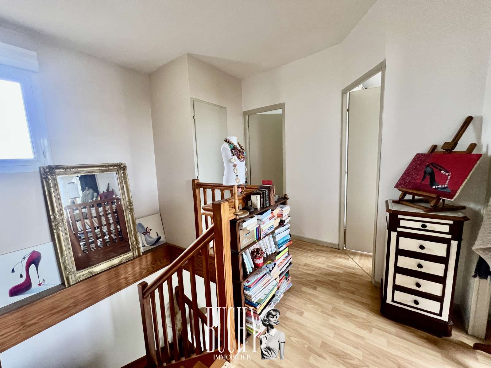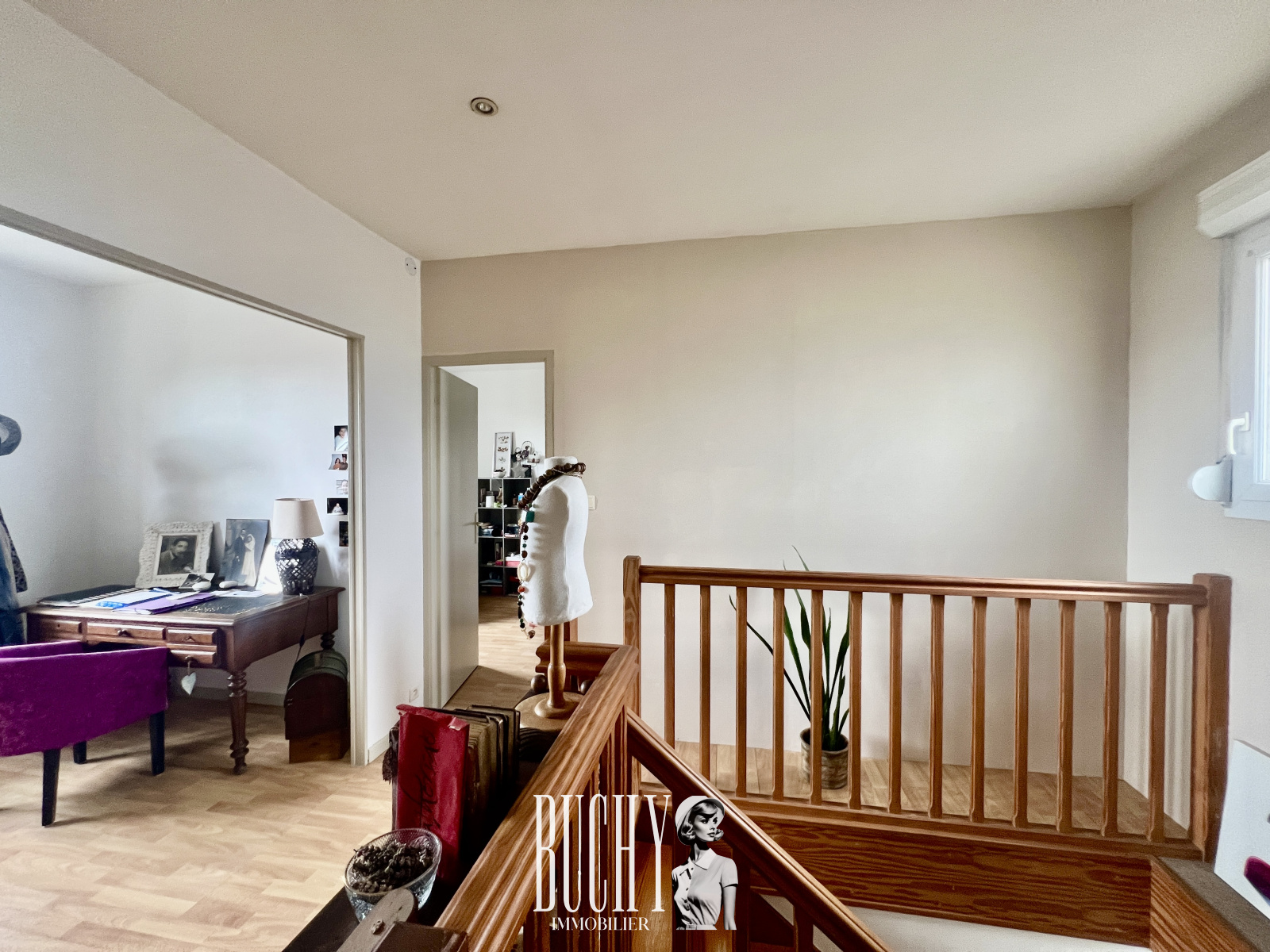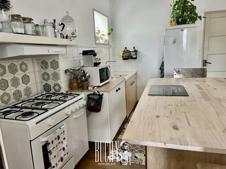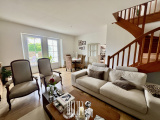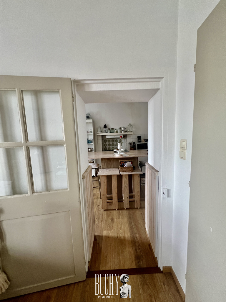 Au rez de chaussée, vous trouverez une cuisine équipée, un salon séjour acceuillant une cheminée, parfait pour les soirées d'hiver.A l'étage, un palier dessert un bureau, deux chambres dont une tres spacieuse, ainsi qu'une salle bains et un WC séparés.Le garage attenant à la cuisine dispose également d'un coin buanderie avec une douche retour de plage et un WC, offrant un espace pratique et fonctionnel.A l'extérieur profitez d'un petit patio à l'arriere et d'une cour exposée plein sud pour les moments de détente.