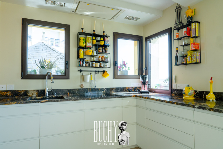 L’agencement intérieur propose un espace entièrement dédié aux propriétaires au sommet de la villa, offrant calme et recul, tandis que les autres chambres permettent d’accueillir famille et proches dans des conditions idéales, en toute indépendance.