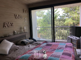 Appartement de type 3, situé au 2ème étage d'une petite résidence au milieu des pins, séjour avec deux grandes baies ouvrant sur une loggia profitant d'un bel ensoleillement et d'un aperçu mer, cuisine ouverte avec comptoir, 2 chambres avec balcon, salle d'eau, parkings communs. Plage et commerces à proximité, idéal pour les vacances !